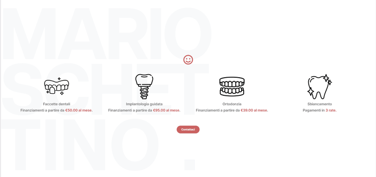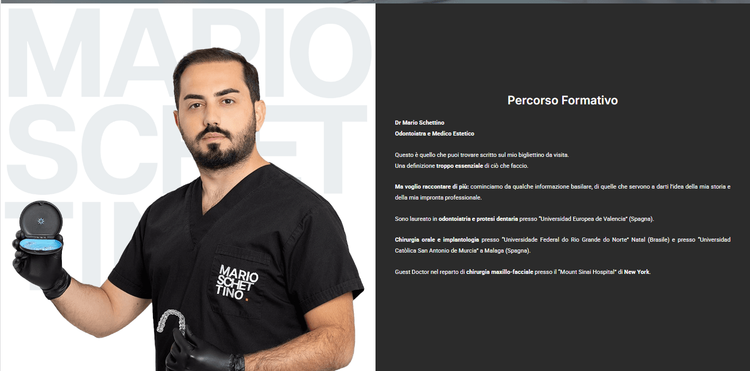 Lo studio del Dr. Mario Schettino — odontoiatra e specialista in armonizzazione del viso — aveva già una presenza online, ma il sito esistente non rispecchiava più il livello professionale dello studio né la varietà dei servizi offerti. Serviva un aggiornamento che rendesse la navigazione più chiara e l'immagine più coerente con il posizionamento premium dello studio.